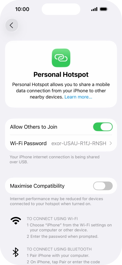 To use your phone as a personal hotspot, you need to turn on the function and establish a connection from the other device to your phone's hotspot.