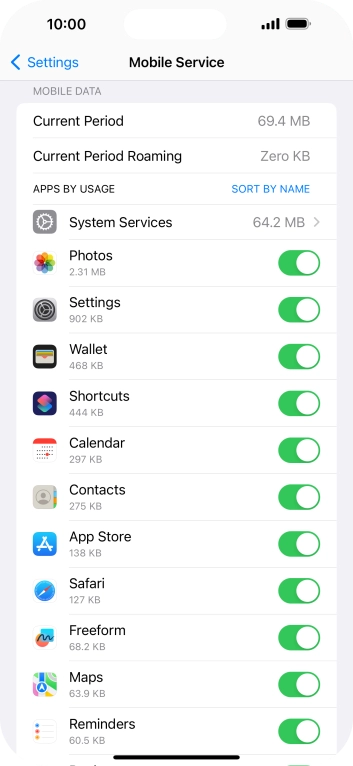 3. 3. Turn use of mobile data for applications on or off
