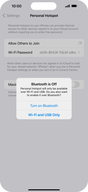 Key in the password for the personal hotspot and establish the connection.