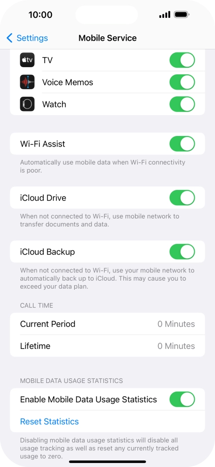 Press the indicator next to "Wi-Fi Assist" to turn the function on or off.