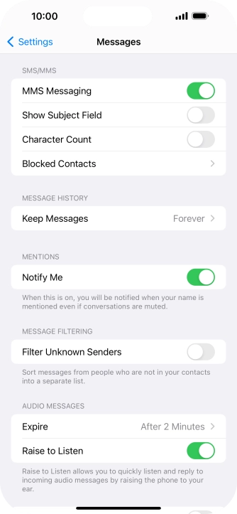 Press the indicator next to "MMS Messaging" to turn on the function.