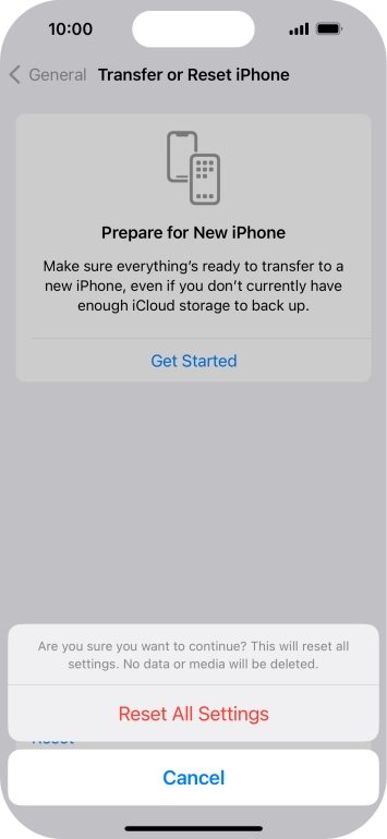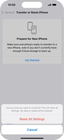 Press Reset All Settings. Wait a moment while the factory default settings are restored. Follow the instructions on the screen to set up your phone and prepare it for use.