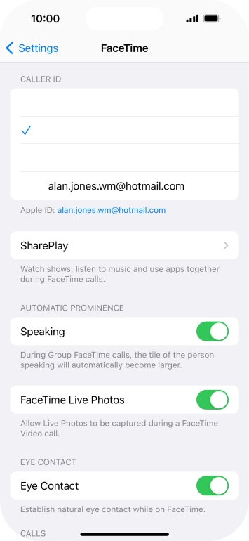 Select FaceTime settings