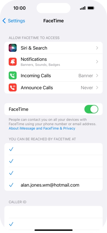 Press the required setting below "YOU CAN BE REACHED BY FACETIME AT".