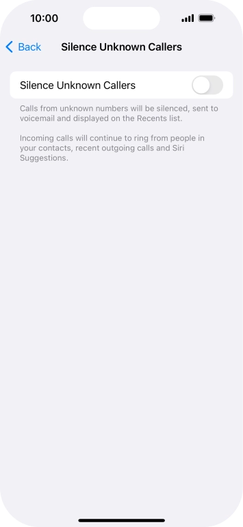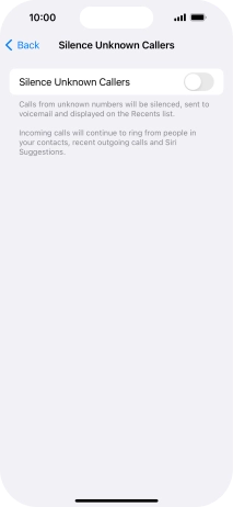 Press the indicator next to "Silence Unknown Callers" to turn the function on or off.