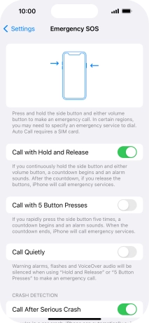 Press the indicator next to "Call After Serious Crash" to turn on the function.