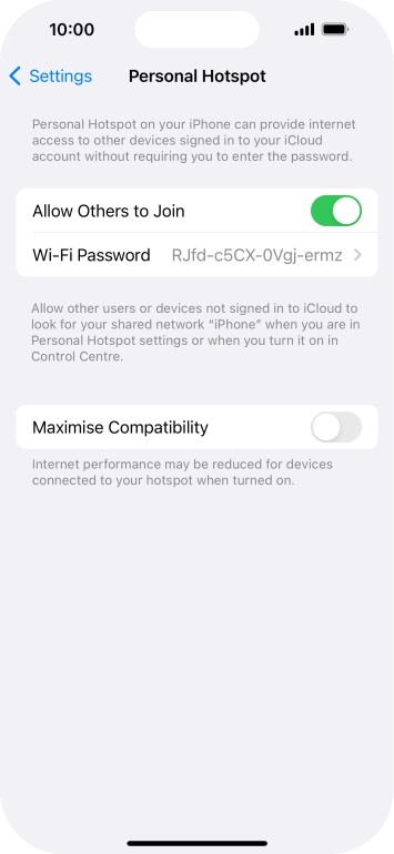 Find the list of available Wi-Fi networks and select the personal hotspot you've just set up.