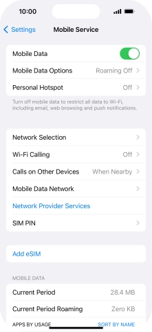 Press the indicator next to "Mobile Data" to turn the function on or off.