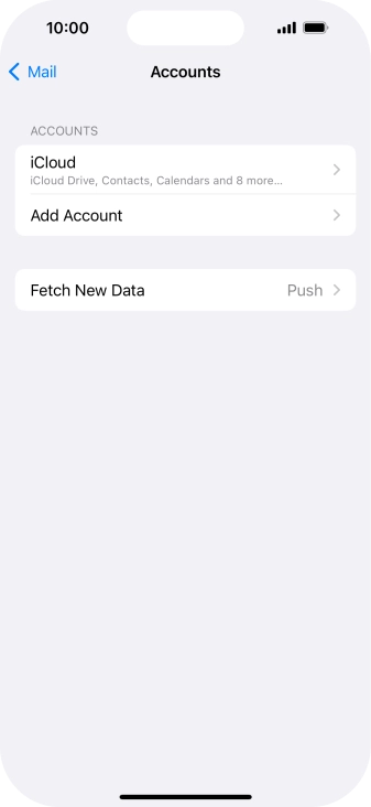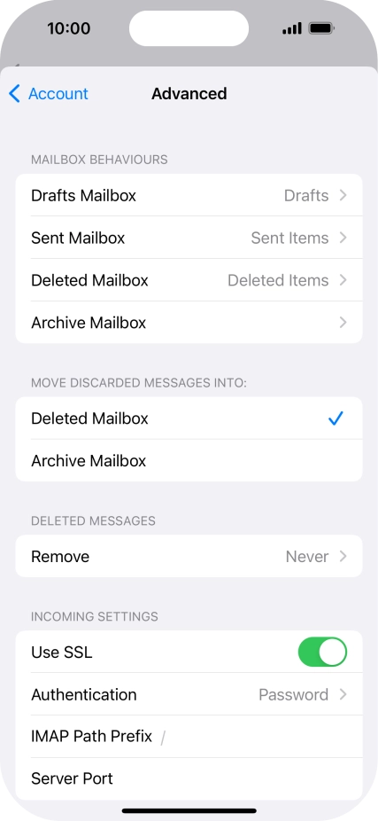 Press the required email account and follow the instructions on the screen to select settings for the specific account.