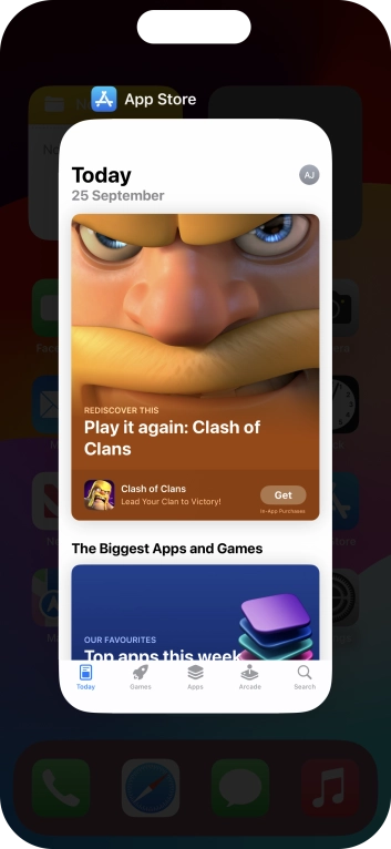 Slide your finger slowly upwards starting from the bottom of the screen until the list of running applications is displayed.