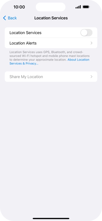 Press the indicator next to "Location Services" to turn the function on or off.