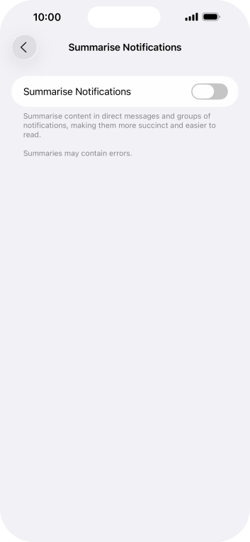 Press the indicator next to "Summarise Notifications" to turn the function on or off.