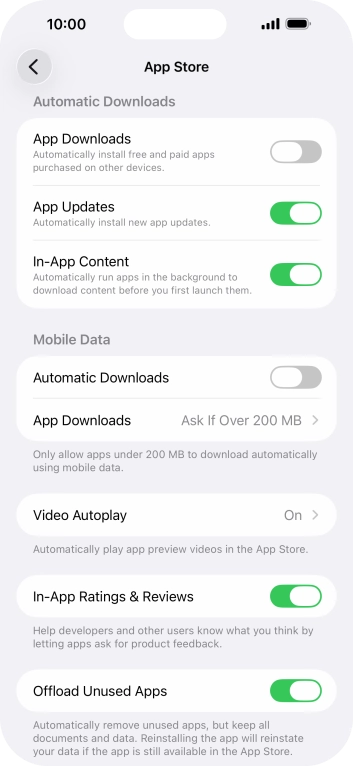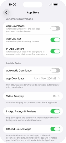 Press the indicator next to "App Downloads" to turn the function on or off.