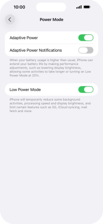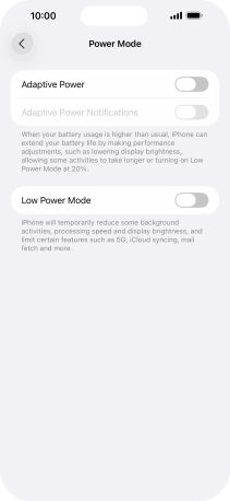 Press the indicator next to "Low Power Mode" to turn on the function.