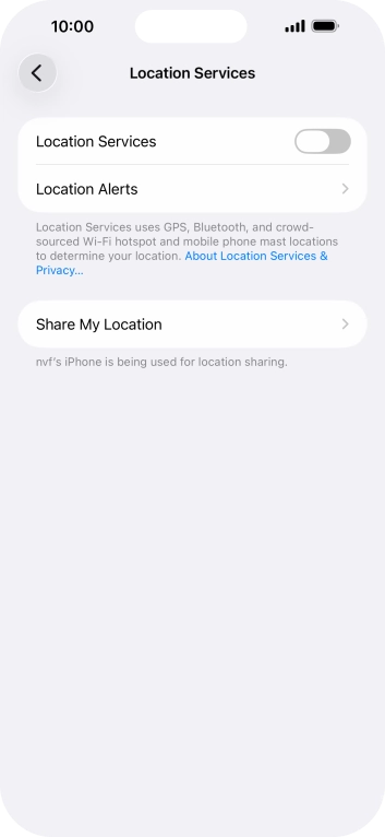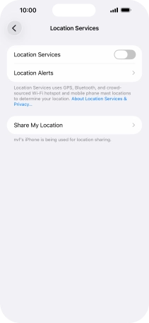 Press the indicator next to "Location Services" to turn the function on or off.