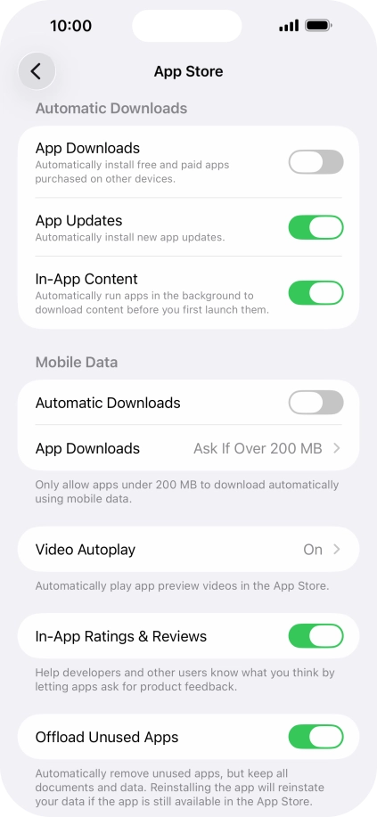 Press the indicator next to "Automatic Downloads" to turn the function on or off.