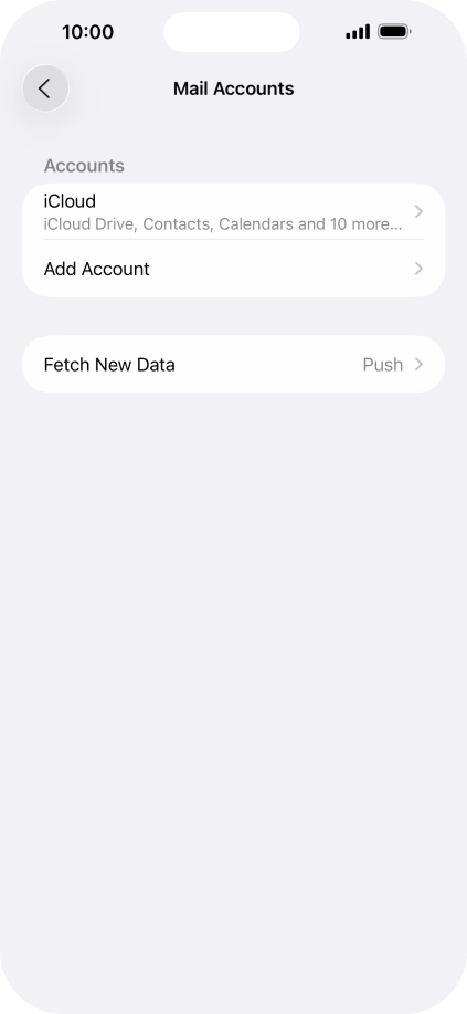 Press the required email account and follow the instructions on the screen to select settings for the specific account.