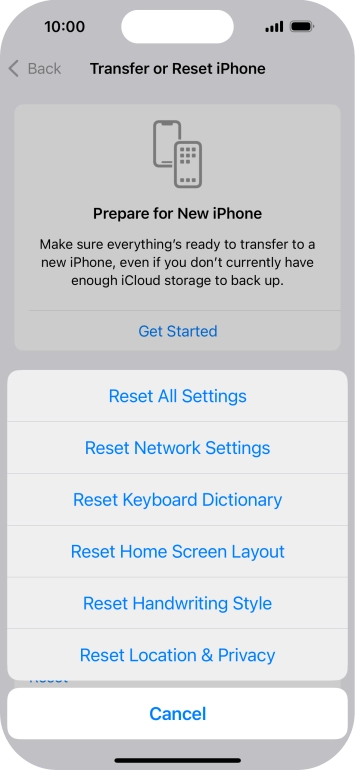 Press Transfer or Reset iPhone.