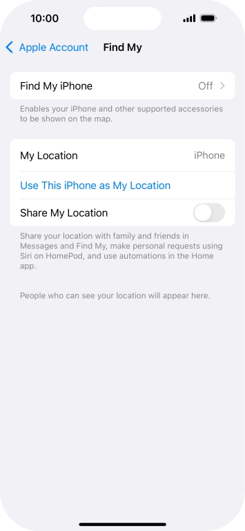 Find My iPhone enables you to find your phone if you lose it or you can lock it should it get stolen. To select settings for Find My iPhone, you need to activate your Apple Account on your phone.