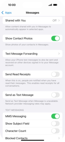 Press the indicator next to "MMS Messaging" to turn on the function.