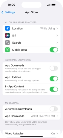 Press the indicator next to "Automatic Downloads" to turn the function on or off.