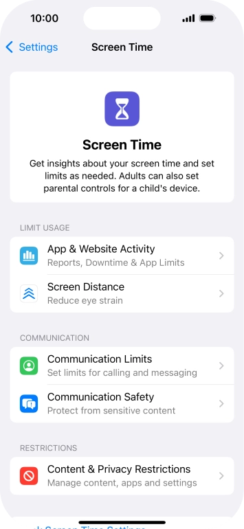 Press Screen Time and optionally select the required member of your family group.