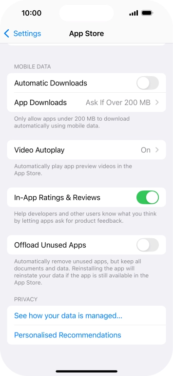 Press the indicator next to "Offload Unused Apps" to turn the function on or off.