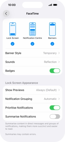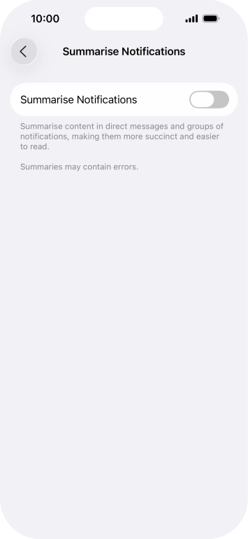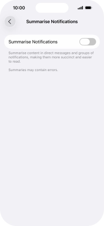 Press the indicator next to "Summarise Notifications" to turn the function on or off.