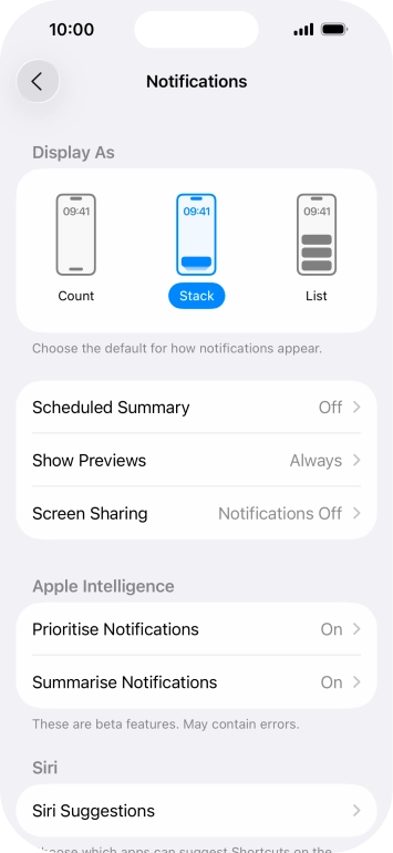 Press the indicator next to "Summarise Notifications" to turn the function on or off.
