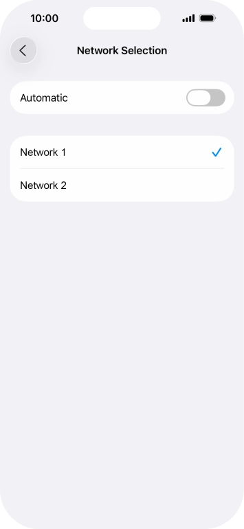 Press the indicator next to "Automatic" to turn automatic network selection on or off.
