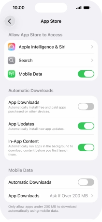 Press the indicator next to "App Downloads" to turn the function on or off.