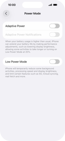 Press the indicator next to "Low Power Mode" to turn on the function.