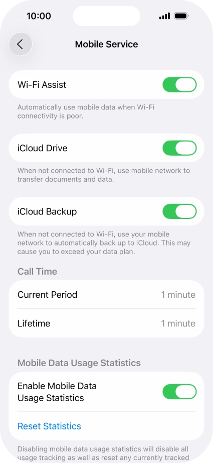 Press the indicator next to "Wi-Fi Assist" to turn the function on or off.