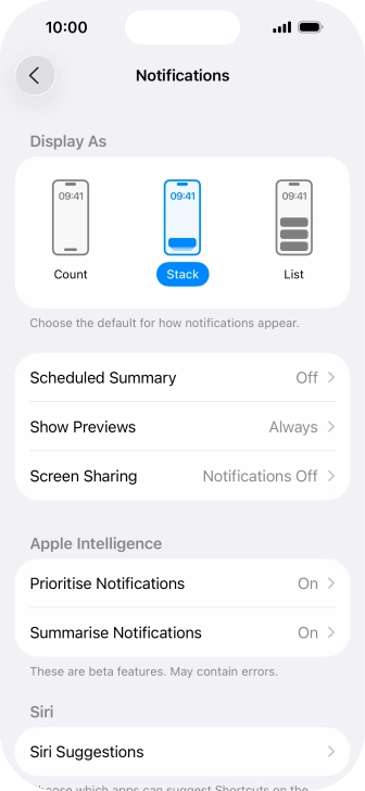 You can use Apple Intelligence to prioritise important and time-sensitive notifications. High priority notifications appear at the top of the notification list. To use the function, you need to turn on Apple Intelligence.