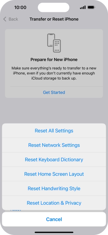 Press Transfer or Reset iPhone.
