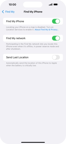 Select settings for Find My iPhone
