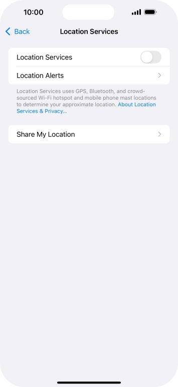 Press the indicator next to "Location Services" to turn the function on or off.