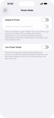 Some functions on your phone use a lot of power and therefore significantly reduce the battery life. You can reduce the power consumption by turning on low power mode.