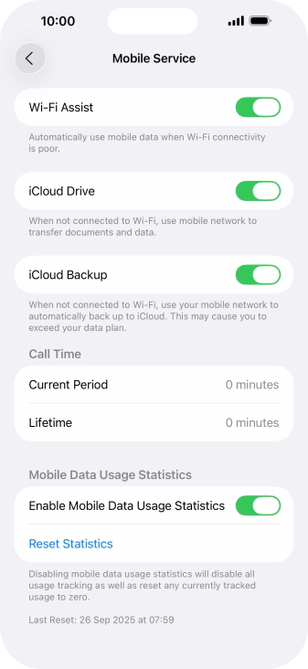 Press the indicator next to "Wi-Fi Assist" to turn the function on or off.