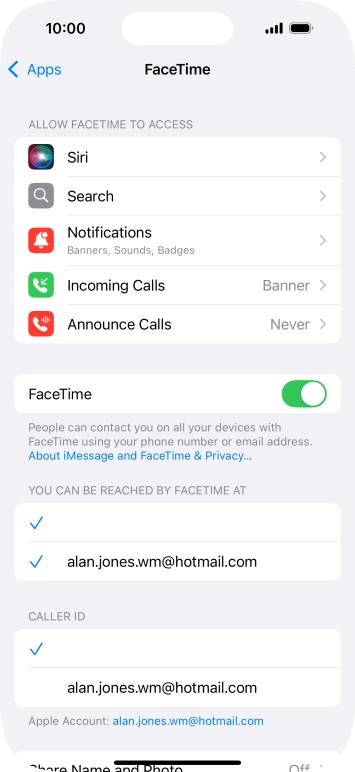 Press the required setting below "YOU CAN BE REACHED BY FACETIME AT".