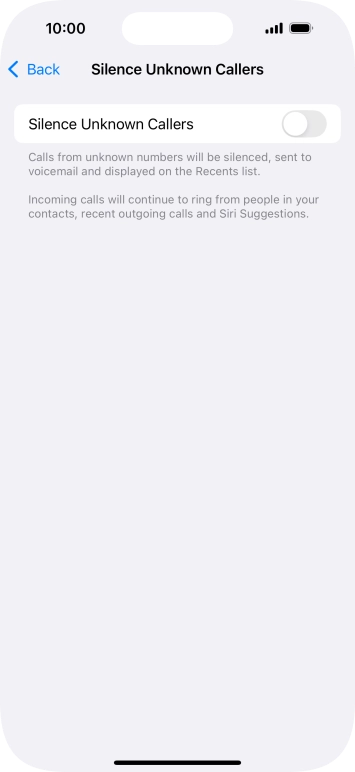 Press the indicator next to "Silence Unknown Callers" to turn the function on or off.