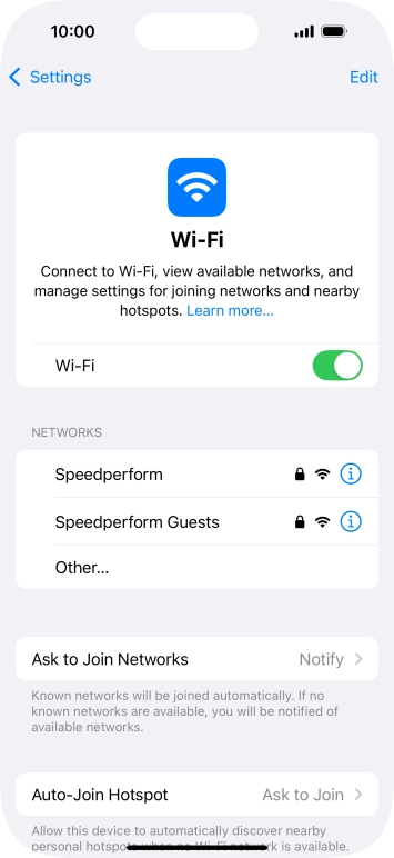 Press the indicator next to "Wi-Fi" to turn on the function.