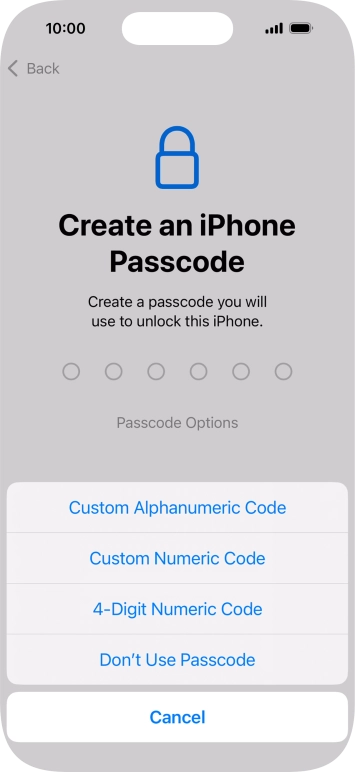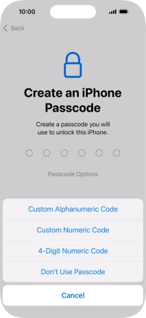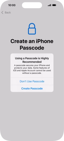 Follow the instructions on the screen to turn on use of phone lock code or press Don't Use Passcode.