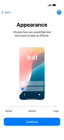 Select the required text and icon size on your phone and press Continue.