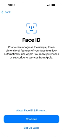 Follow the instructions on the screen to turn on use of Face ID or press Set Up Later.
