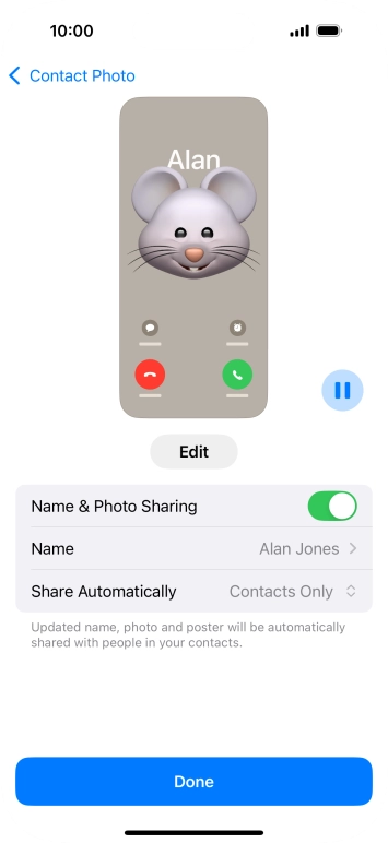 Press Name and follow the instructions on the screen to edit your name on the Contact Poster.