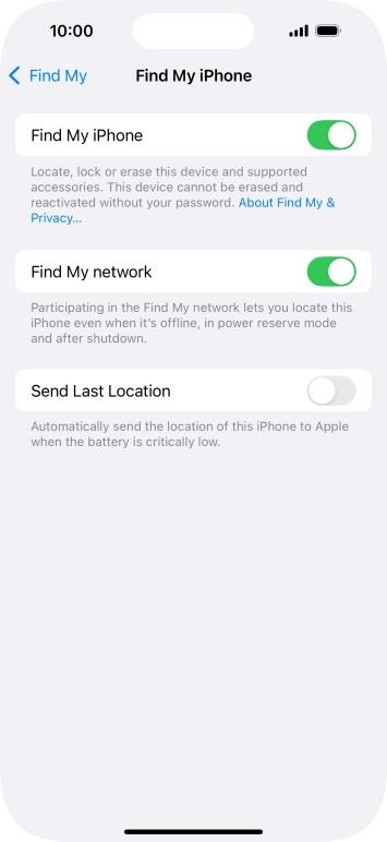 Select settings for Find My iPhone