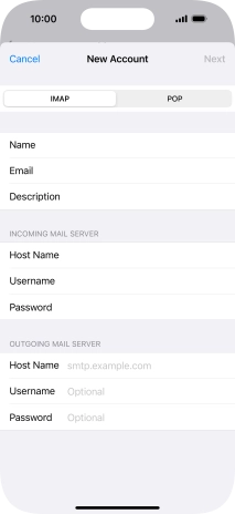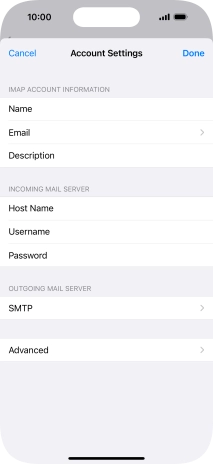 Press Host Name and key in the name of your email provider's outgoing server.