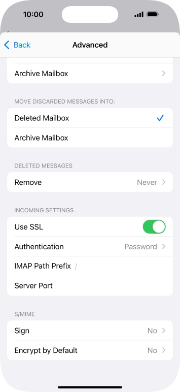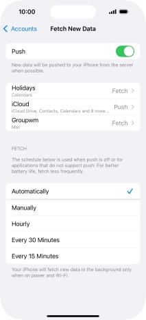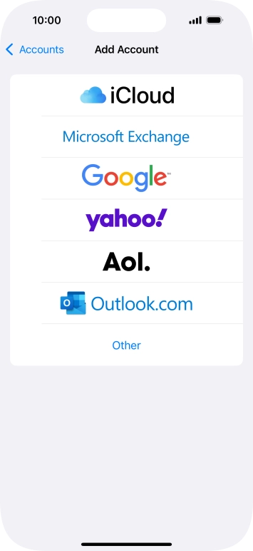Press the required email account and follow the instructions on the screen to select settings for the specific account.