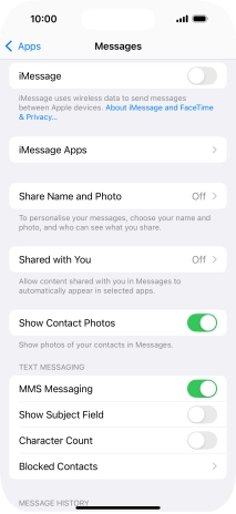 Press the indicator next to "MMS Messaging" to turn on the function.